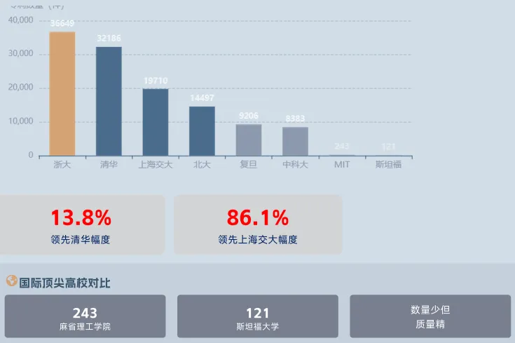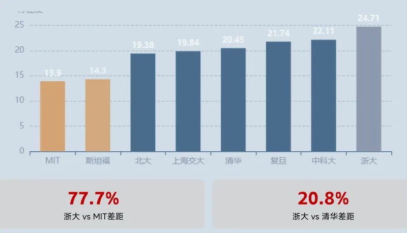 国际差距:MIT市场化率是浙大的2.3倍,斯坦福是浙大的2.1倍,反映国际顶尖高校更强的市场导向。