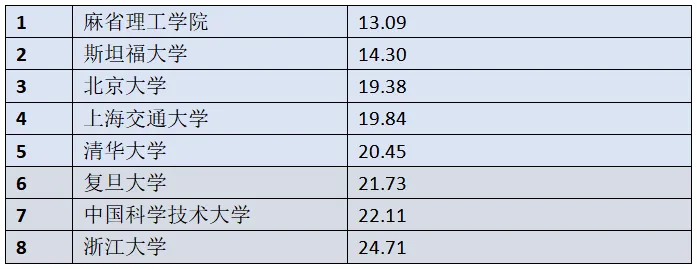 国内对比:在国内6所高校中排名末位,比清华高20.8%,比北大高27.5%。