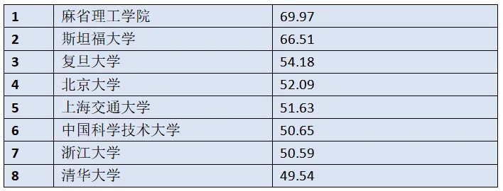 国内位置:浙大在国内6所高校中排名第5,低于复旦(54.18)、北大(52.09)和上海交大(51.63)。