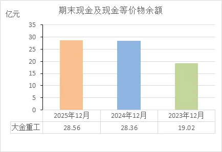 期末余额:账上实际趴着 28.6亿 现金(等价物)。