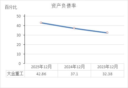 对比同行:风电设备制造行业通常资产较重,很多企业负债率在50%-60%之间。大金重工42.86%算是偏保守的水平。