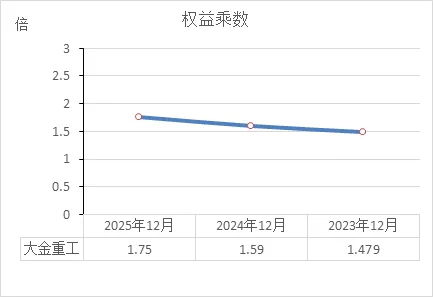 绝对值:1.75倍意味着总资产是净资产的1.75倍,换算成资产负债率就是 42.8%(1 - 1/1.75)。这在制造业里属于中等偏低的杠杆水平,远低于很多负债率50%-60%的企业。