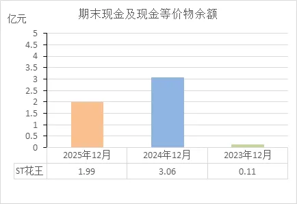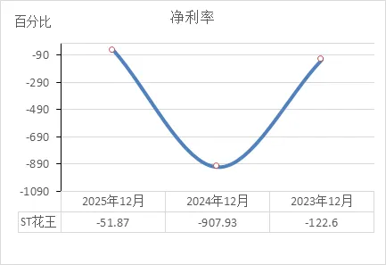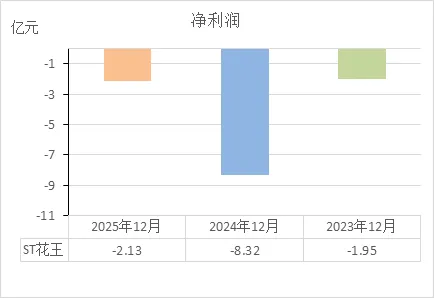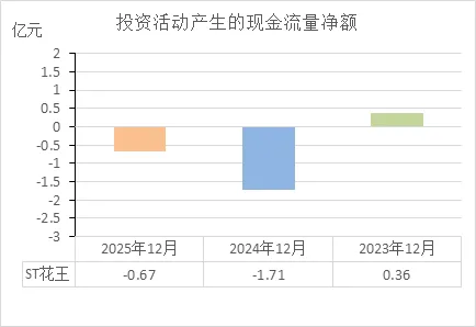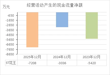 ST花王的状态:连续三年经营失血,2025年更是创了新低。这说明它自身造血功能严重衰竭。