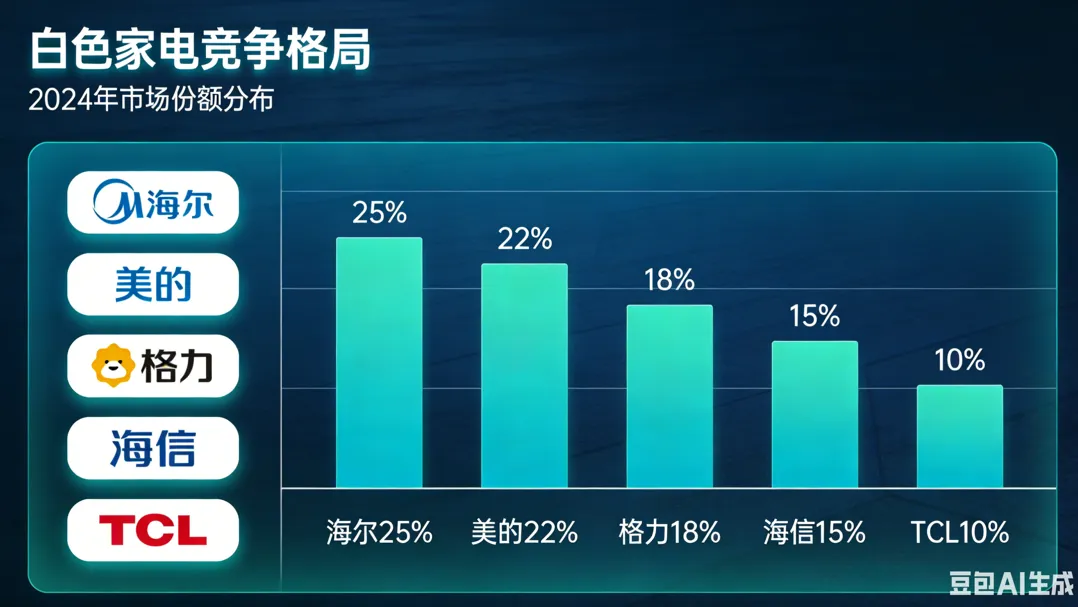 行业地位 | 全球综合白电龙头,空调市占率稳居国内第一、全球前列;全品类家电布局完善,小家电市占率位居行业头部;工业机器人领域(库卡)为国内龙头,是白电行业中多元化转型最成功的企业之一,海外营收占比超40% |