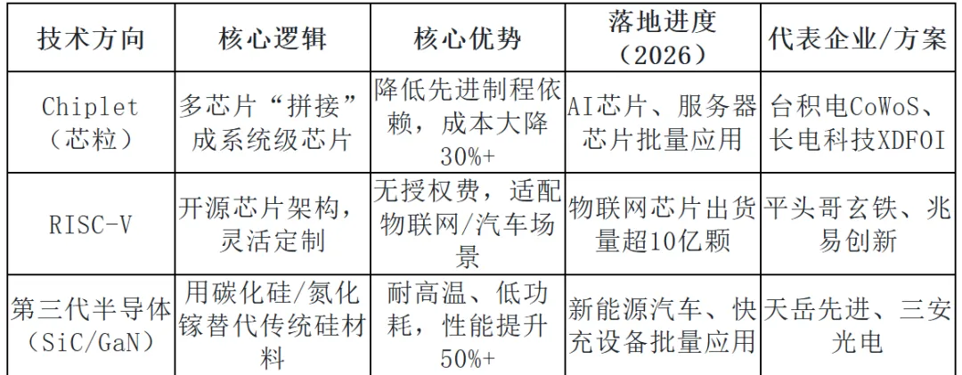 随着硅基材料的物理极限逼近,半导体行业的增长逻辑从“制程微缩”转向“技术创新”:不再追求单一芯片的晶体管密度,而是通过“封装集成”“架构革新”“材料替换”提升芯片性能。2026年,三大新技术已从实验室走向商用,成为行业增长的新引擎: