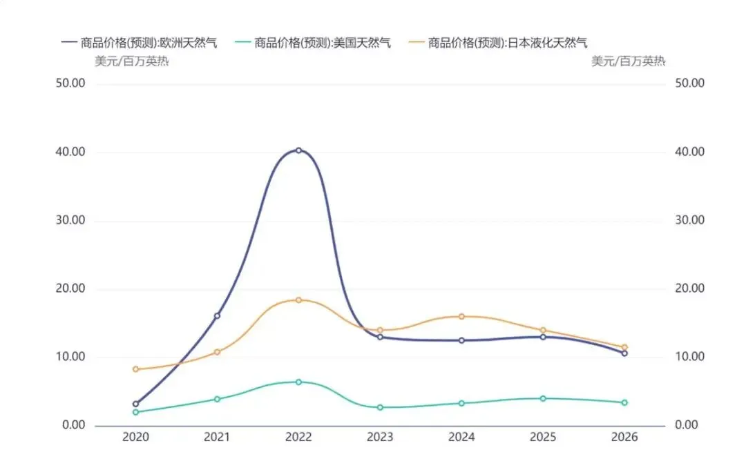 电力价格是能源CPI的核心构成,也是影响工商业成本的关键变量。根据落基山研究所2025年12月发布的报告,未来两年(2026-2027年),全国绝大多数工商业用户的电网购电成本总体水平保持稳定,日间购电价格可能进一步下降。这一判断基于以下分析框架:工商业用电成本由发电侧上网电价、输配电费及线损、系统运行费用和政府基金附加四大部分组成。未来两年,发电侧上网电价或将有所下降(新能源全面入市竞争、煤电容量电价机制完善),同时系统运行成本将逐步上升(辅助服务费用增加、容量补偿机制建立),两者对冲后零售价格平均水平总体稳定。但结构变化显著——随着现货市场推广建设以及光伏渗透率进一步提高,更多省份的工商业用户将面临更大的日内价格峰谷差,日间光伏发电时段购电价格更低。这一价格结构变化对高耗能企业、可调负荷用户形成激励,促进需求响应和能效提升。但对分布式光伏项目投资者而言,电价下降意味着收益压缩,需要重新评估项目经济性。6.2.2 天然气价格:2026年全球天然气价格维持稳定,2027年后供需格局逐步宽松,价格有下降风险