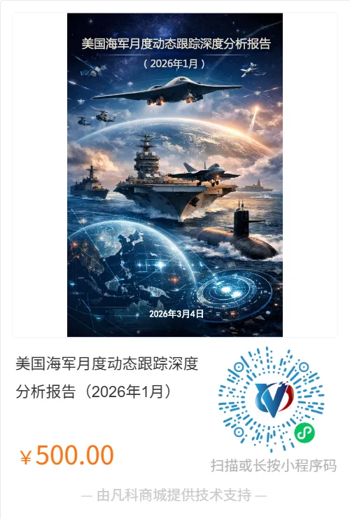《美国海军月度动态跟踪深度分析报告(2026年1月)》系统梳理了2026年1月1日至1月31日期间美国海军在装备建设、军事运用、采办工业、战略政策与人员组织等领域的重要动态,并基于官方NAVADMIN指令、国防部合同公告、舰队新闻稿等一手材料建立可核验的证据链,对当月关键事件进行结构化分析。报告全文约1.9万字,共分为战略态势总览、分领域深度研判、专题分析、风险评估与趋势预测等模块,并附有事件台账与参考资料索引,形成可持续跟踪的研究框架。报告认为,美国海军当前战略转型的核心逻辑是围绕“大国竞争背景下的高端海上战争准备”,通过顶层作战概念发布、战备可用率提升、印太前沿部署强化、采办机制敏捷化以及人力体系调整构建新的能力生成体系。其中,《海军作战概念V1.0》发布被视为最具战略意义的节点,它将分布式海上作战等既有理念整合为统一作战纲领,并通过兵棋推演、演训验证和能力迭代牵引舰队建设。同时,美国海军资源投入明显向现役装备保障与供应链稳定倾斜,并以印太为核心推进前沿存在、盟友协同与远海保障体系建设。报告在总结当月关键动态的同时,对未来1—3年美国海军战略方向、装备优先级与部署趋势进行了系统研判,并提出持续跟踪重点。