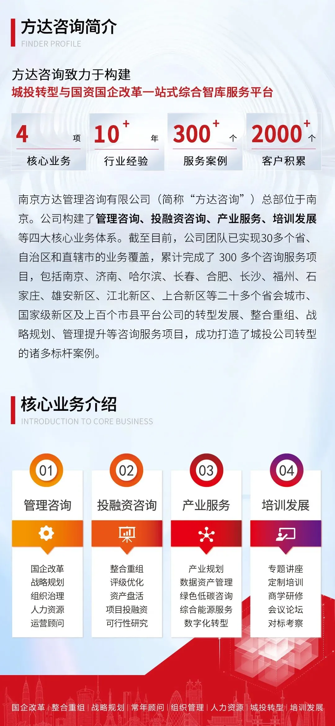 在扩能提质服务业方面,《报告》提出“深化先进制造业和现代服务业融合发展试点”,“发展金融、现代物流、知识产权、检验检测等生产性服务业”以及“促进生活性服务业高品质、多样化、便利化发展”等。《报告》也提出要“推动科技创新和产业创新深度融合,加强中试验证平台建设”等内容。城投公司在产业化转型过程中,应响应《报告》要求,加速推动“两业融合”发展,除了已经开展的金融服务、商贸物流外,还可重点布局产业链上的检验检测、产业链配套的包装服务以及通过建设中试基地或中试平台提供产业链上的中试服务等生产性服务业。另一方面也要围绕提升人的发展,响应投资于人要求,提供人才引进、劳务外包、教育培训、产教融合等各类人才服务。