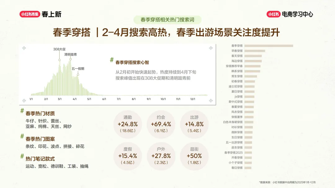 且春季穿搭搜索从 2 月起热度攀升至 4 月下旬,