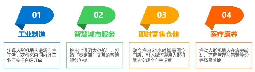 银河通用具身智能机器人已在工业制造、即时零售仓、智慧城市服务、医疗康养等场景规模落地。在工业制造领域,公司已与宁德时代、博世集团、丰田汽车、韩国现代、北汽集团、上汽集团、极氪汽车等国内外龙头企业达成深度合作,率先实现人形机器人进厂真实自主干活,累计订单规模达数干台;在智慧城市服务领域,公司开创城市级具身智能解决方案“银河太空舱”,以人形机器人Galbot为核心,实现完全自主的运营与值守,打造人与机器人