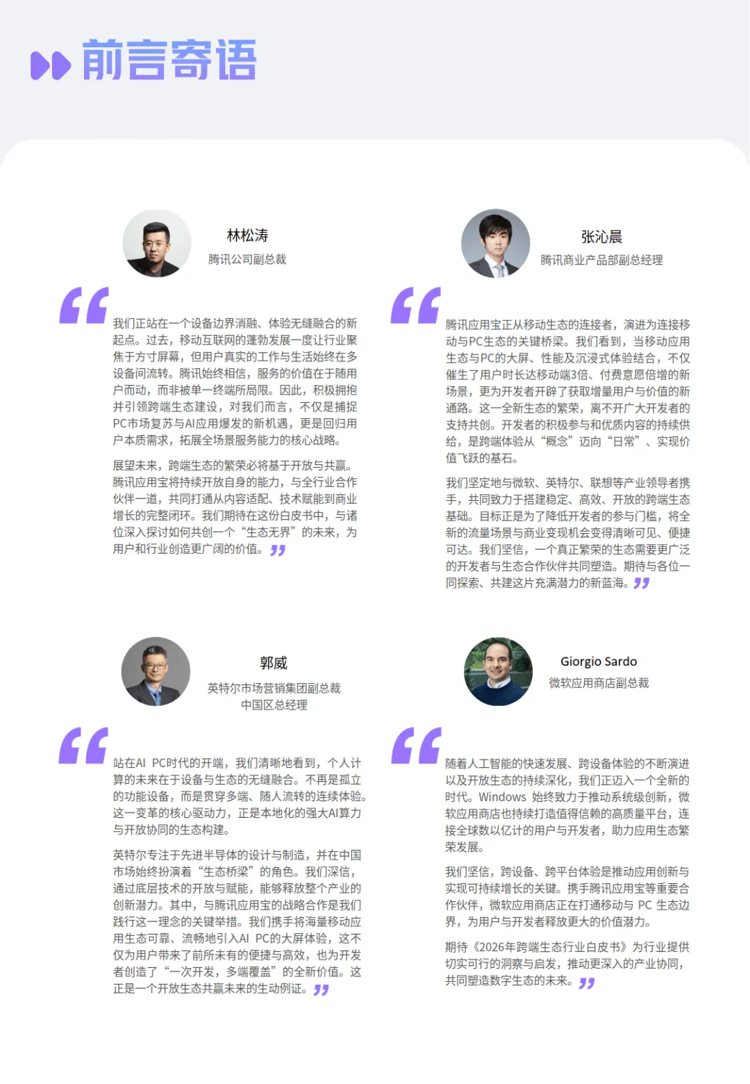 《2026 年跨端生态行业白皮书》由腾讯应用宝联合凯度、微软、英特尔、联想等多方发布,围绕跨端生态发展趋势、用户需求、行业挑战及解决方案展开全面分析,指出跨端生态已成为打破设备边界、驱动数字经济增长的核心抓手,未来将向 AI 智能化与全球化出海方向深度演进。————