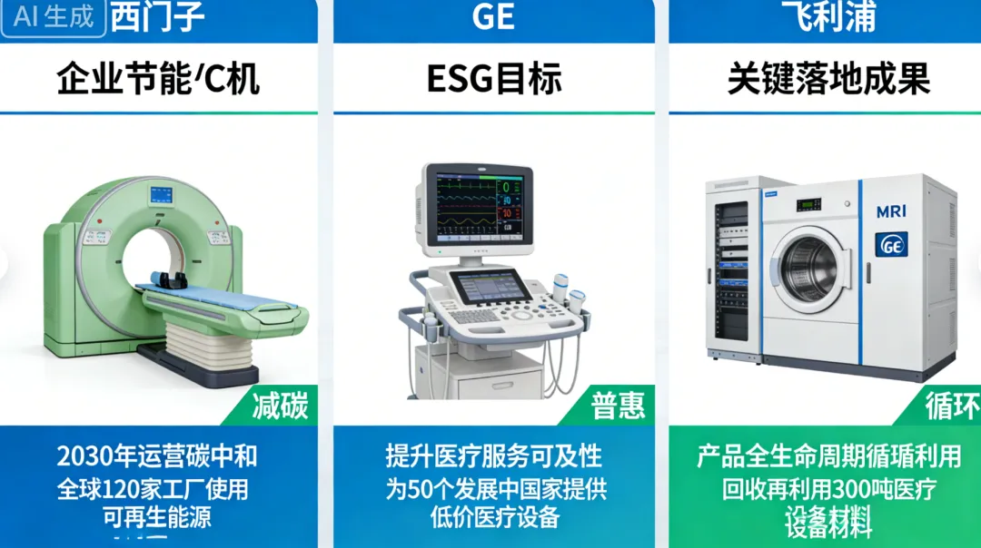 西门子医疗、GE 医疗、飞利浦医疗等国际龙头企业,凭借清晰的 ESG 战略、落地的实践举措,成为行业标杆,为本土企业提供可复制、可借鉴的经验。