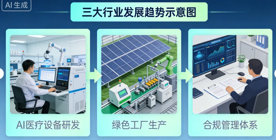 AI 医疗器械市场高速增长,中国 2030 年市场规模预计达 755.69 亿元,年复合增长率 39%;国家药监局创新器械优先审批通道,将加速高端产品国产替代与绿色创新; - 绿色制造成为主流