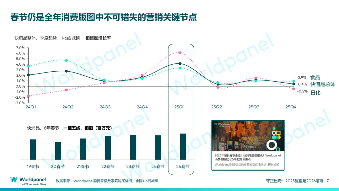 2025-2026中国快消市场报告:守正出奇,“少量高频”引领消费新范式!《2025复盘与2026前瞻 中国快速消费品市场的变和不变》由Worldpanel(CTR旗下服务)发布,基于全国1-6线城镇家庭真实购买行为数据,复盘2025年市场平稳增长态势,解析“少量高频”“平价消费”等核心消费特征,预判2026年行业趋势,为快消企业精准布局提供数据支撑。