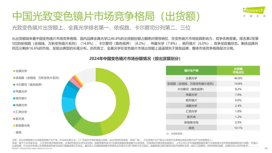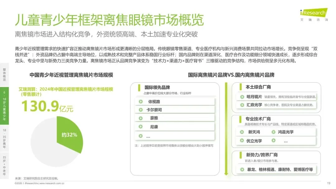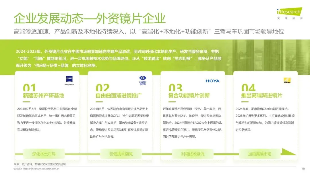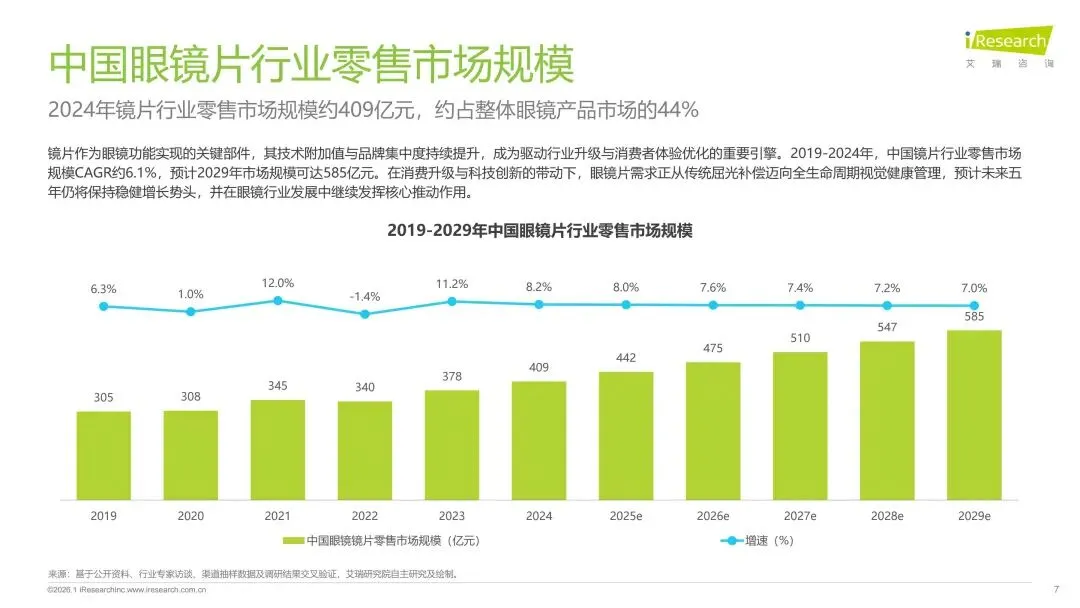 眼镜片作为眼健康产业的关键环节,在消费升级与技术创新双轮驱动下,正从基础的屈光矫正工具,向覆盖全生命周期的综合视觉健康管理方案升级。报告首先对中国眼镜片行业的整体市场规模、增长态势及“国际龙头主导高端、国产品牌功能化崛起”的竞争格局进行了深入剖析。