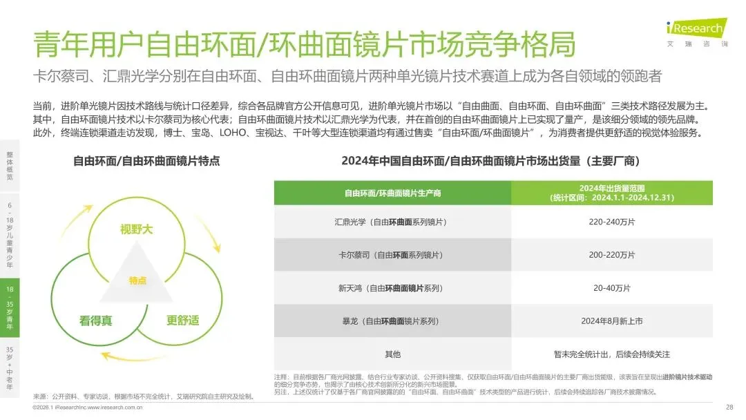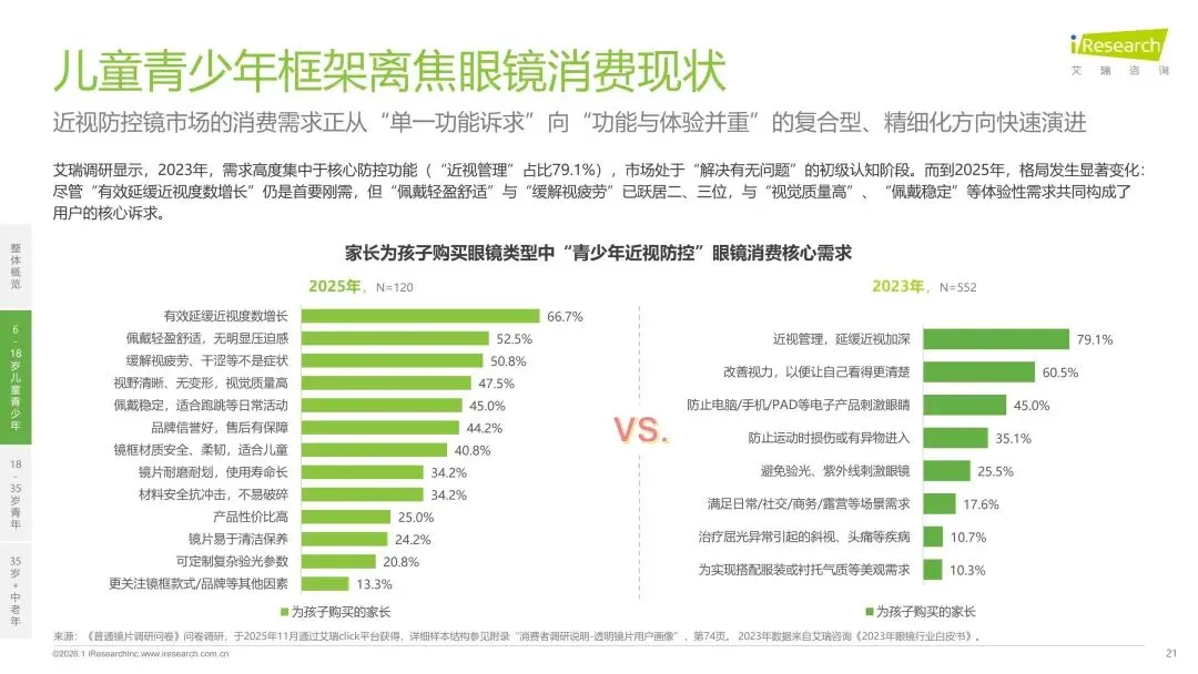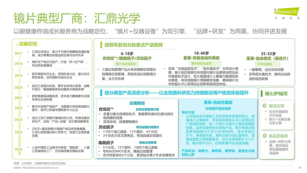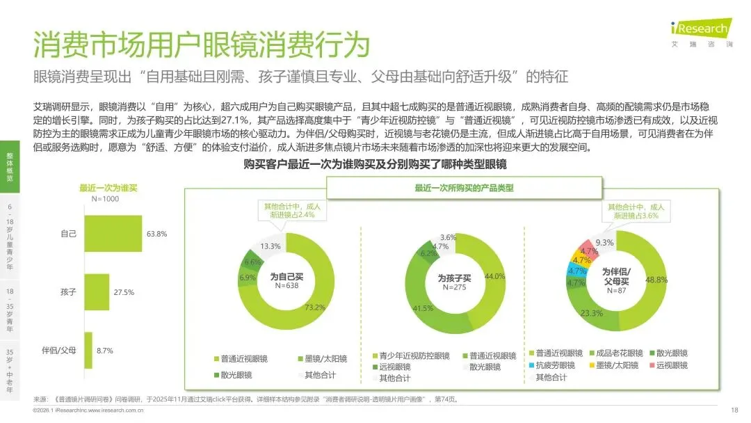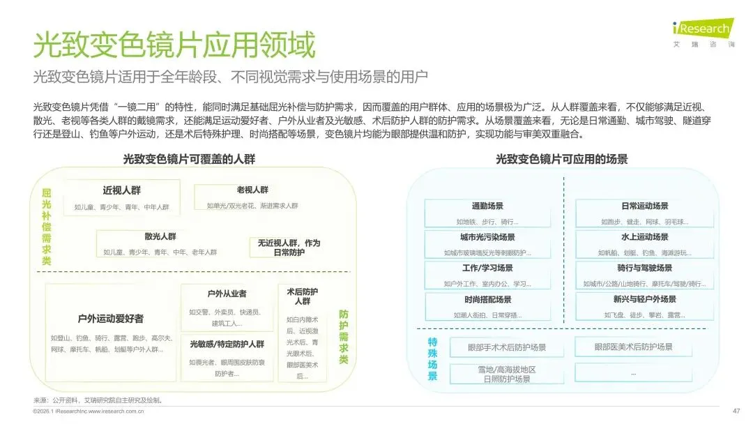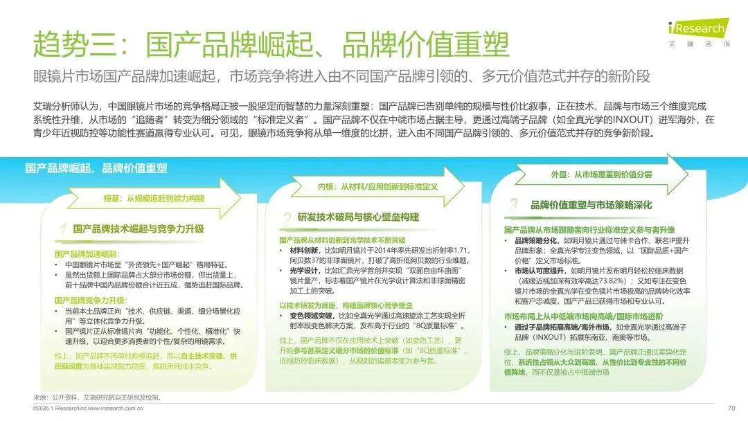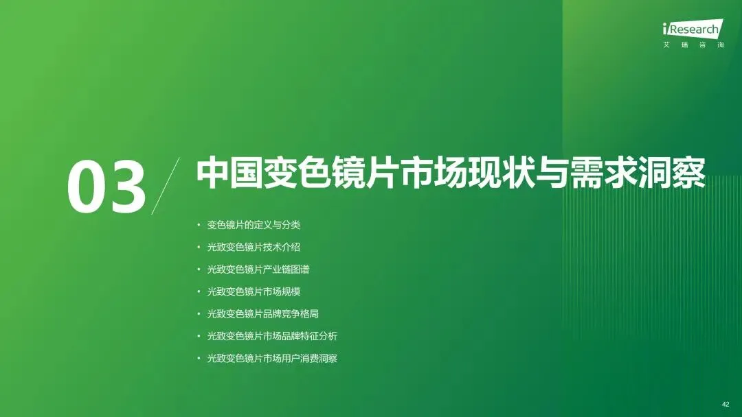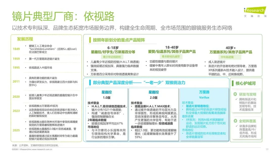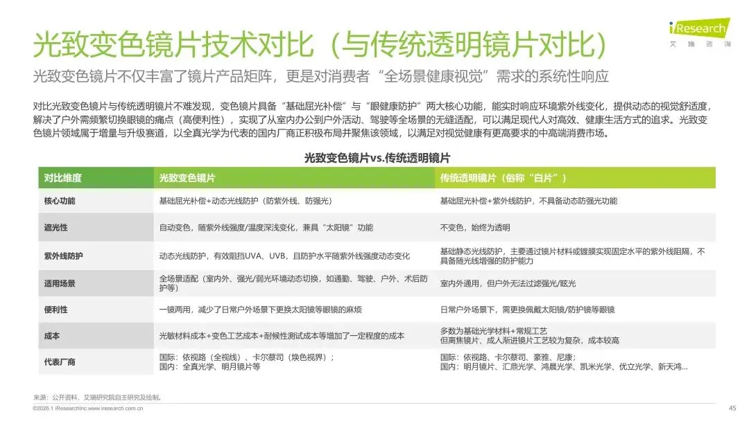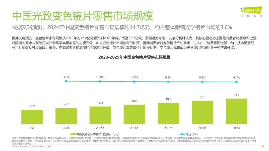 报告分别聚焦于透明镜片与变色镜片两大核心市场,详细梳理了针对儿童青少年、职场青年及中老年等不同人群的细分产品发展现状、技术演进路径、消费者需求洞察与市场趋势。最后,报告提炼出当前行业在价格、信任、服务等方面面临的共性痛点,并展望了未来在产品功能、专业服务、国牌崛起及产业融合等方面的重要发展趋势。本报告旨在为眼镜行业从业者、投资者及相关人士提供全面的市场洞察与决策参考。