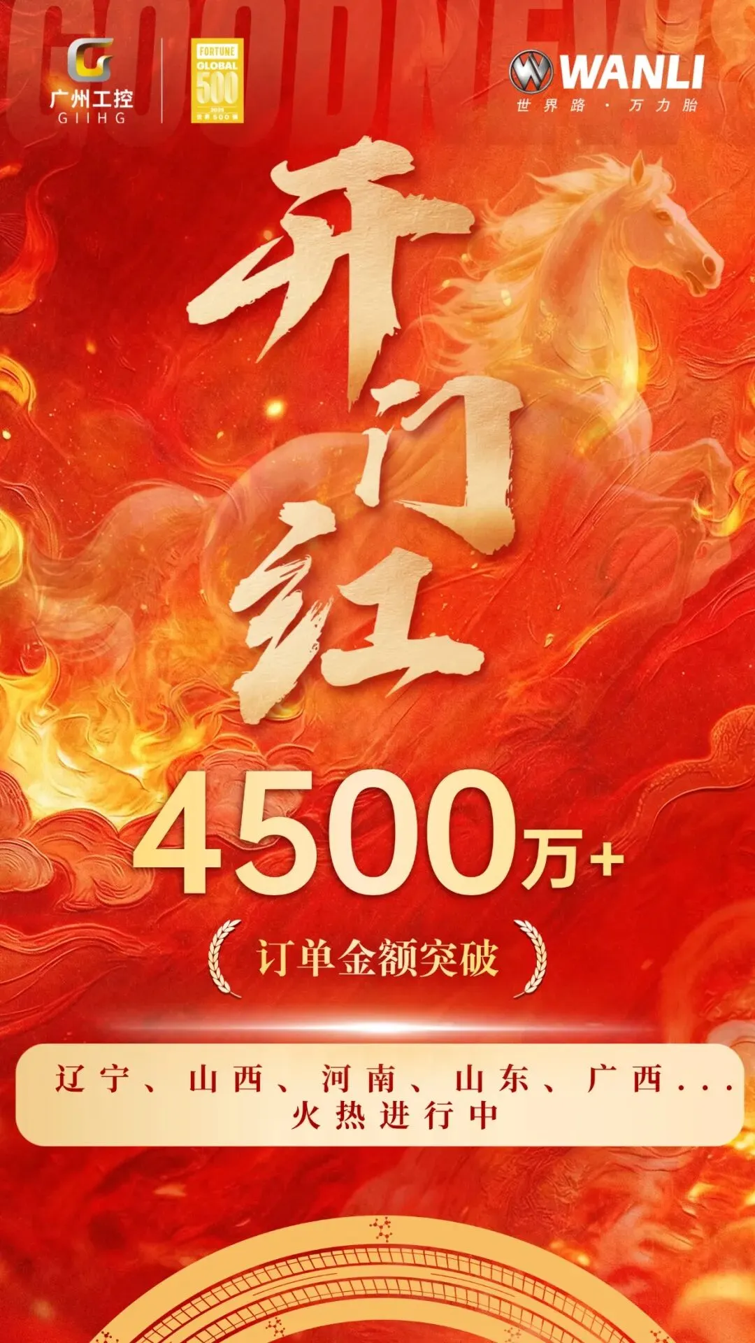 春回大地启新章,马跃山河赴荣光!2026年2月,万力轮胎联动全国核心区域经销商,在辽宁、山西、河南、山东、广西五省陆续召开多场新春订货会。一场场热闹非凡的盛会不仅燃动了各地轮胎市场,更掀起强劲下单热潮,以实打实的订单成绩强势开启马年“开门红”,为全年高质量发展奠定坚实基础。截至2月28日,各会场累计订单总额突破4500万元,充分彰显万力轮胎的品牌实力与市场认可度。
