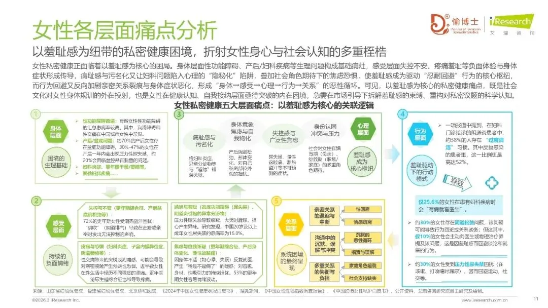 消费者行为上,女性更关注安全性、功效与隐私保护,心理压力成为消费重要契机,私密健康消费粘性突出。行业发展趋势呈现需求升级、供给迭代与市场格局变迁,全周期私密健康管理生态加速成型,Z世代成为消费主力,推动市场从理性规范迈向阳光繁荣。愉博士、信为美等企业通过多维业务生态与精准服务,引领行业规范化、专业化发展。