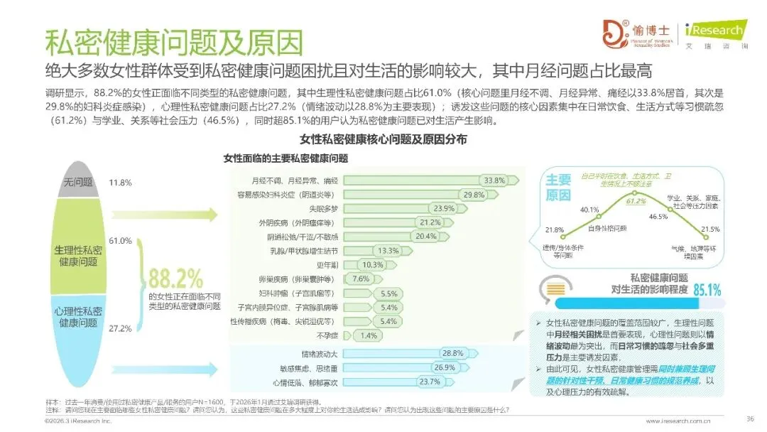 随着女性健康意识的提升,私密健康需求从基础护理向全周期管理升级,行业迎来细分市场爆发。政策推动与市场需求双轮驱动,供给侧在产品、服务、科技三方面深度变革,产品趋向生物活性与天然安全,服务转向全周期管理与个性化定制,科技赋能实现精准解析与家用化场景拓展。