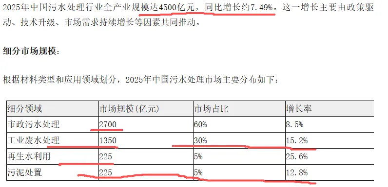 2025年中国污水处理行业全产业规模达4500亿元,同比增长7.49%,跑赢了国民经济的增长速率,说明整个水处理行业的大环境也没有想象中的那么糟糕,还是有“已是悬崖百丈冰,犹有花枝俏”的一丝机会。