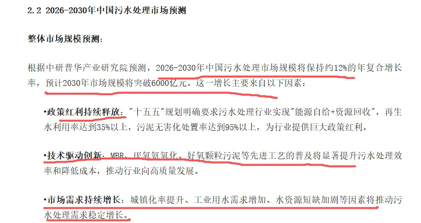 根据预测,2026年-2030年中国污水处理市场规模将年均12%的复合增长率,预计2030年市场规模突破6000亿元,未来的投资机会主要在以下几个方向: