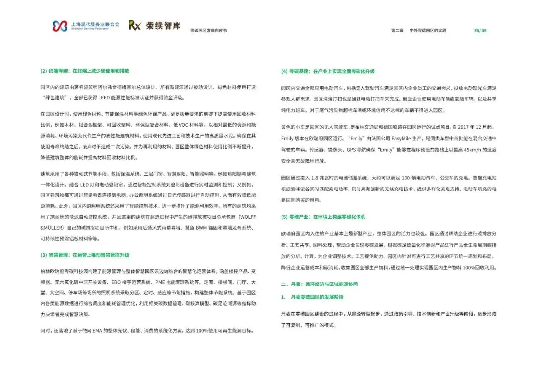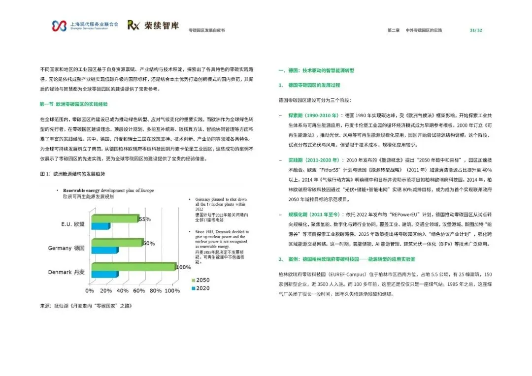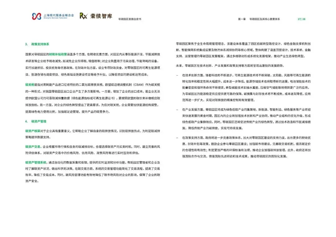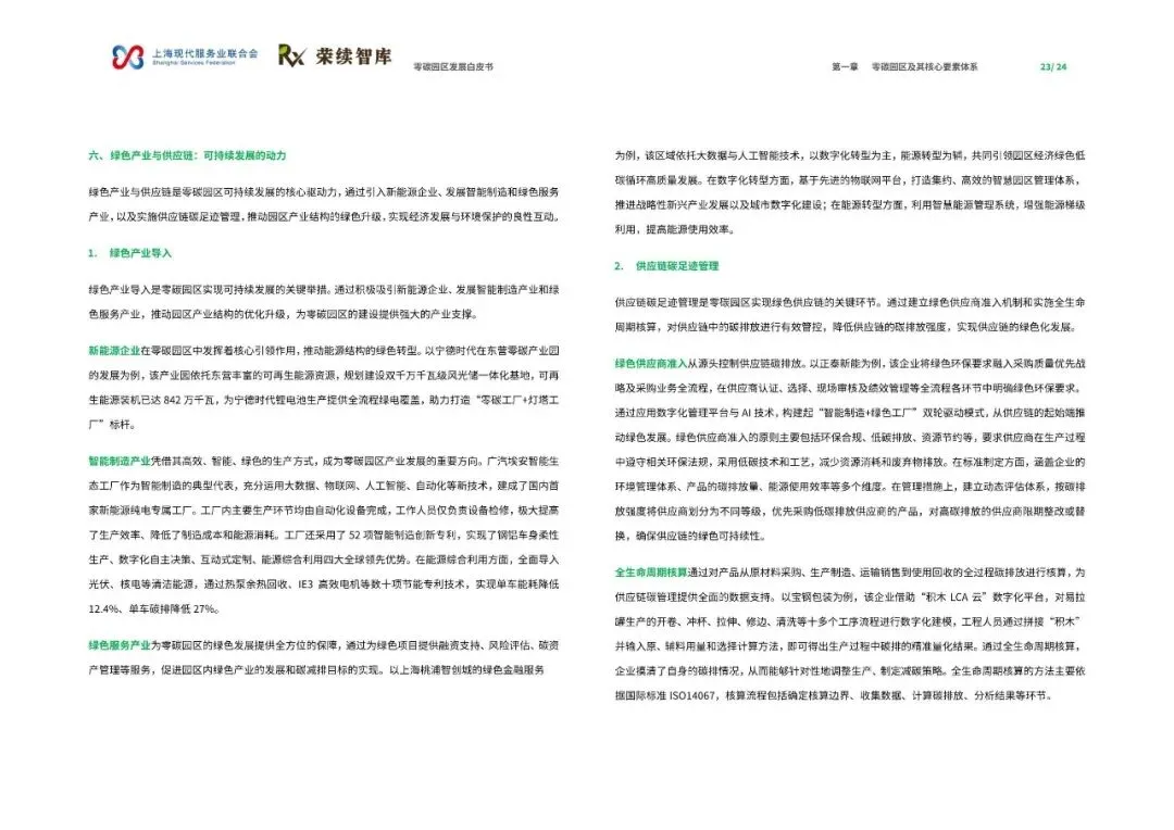 《零碳园区发展白皮书》由上海现代服务业联合会与荣续智库联合发布,旨在系统解析零碳园区的建设逻辑与发展方向,为产业绿色转型提供可借鉴的路径。报告指出,零碳园区建设是破解资源环境约束、重构产业竞争力的关键举措,也是实现‘双碳’目标的重要载体。
