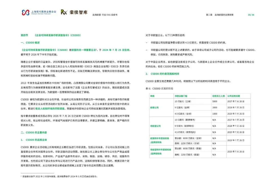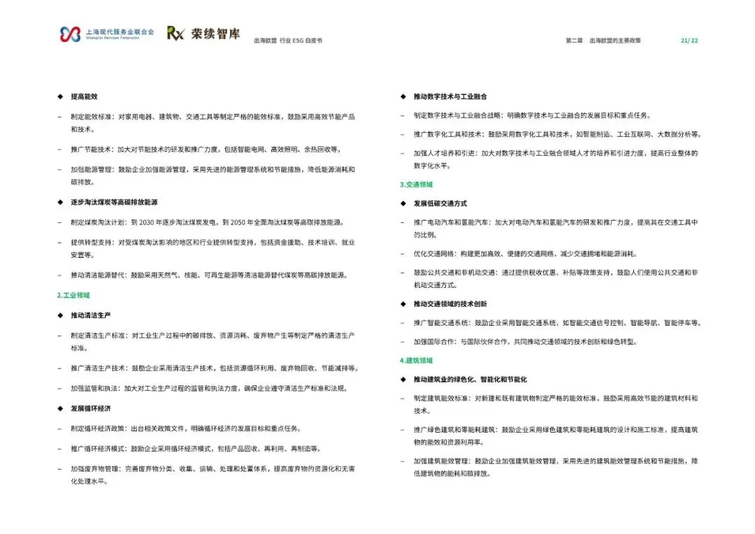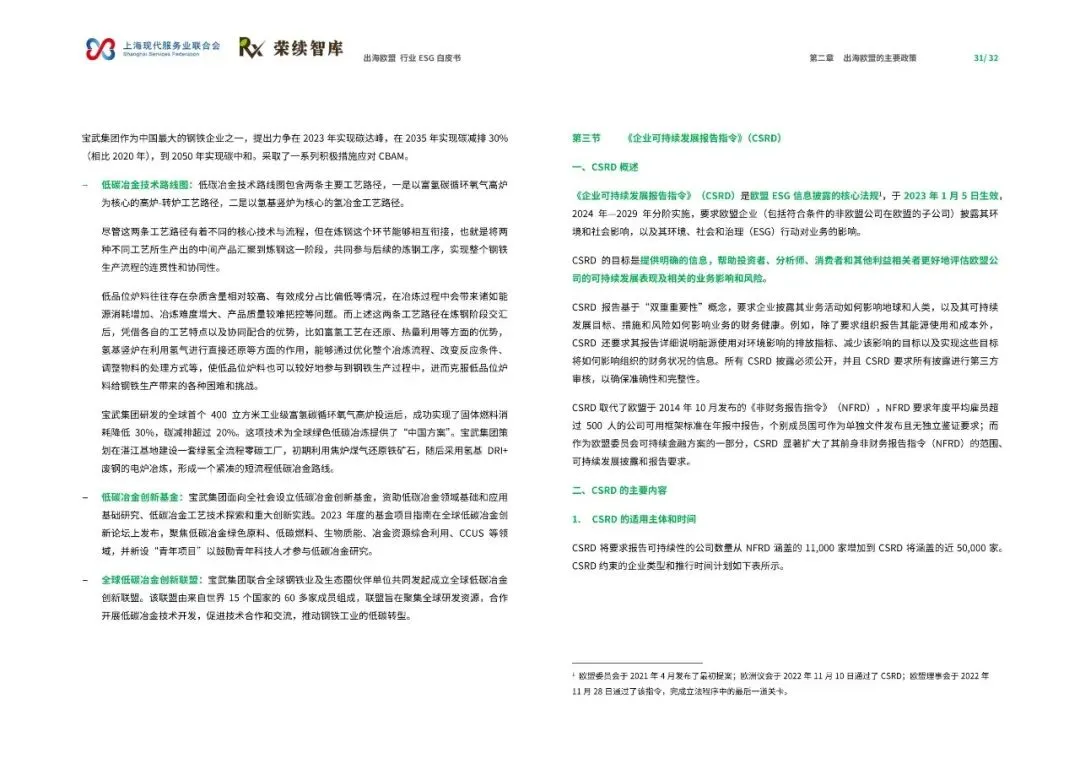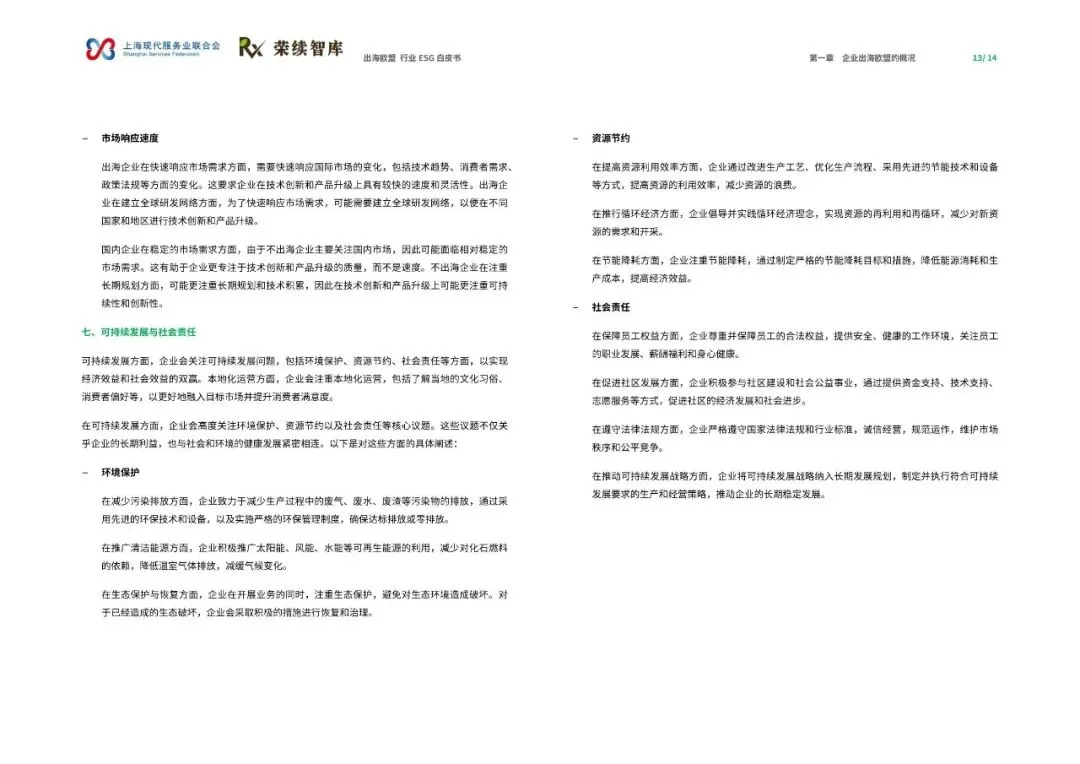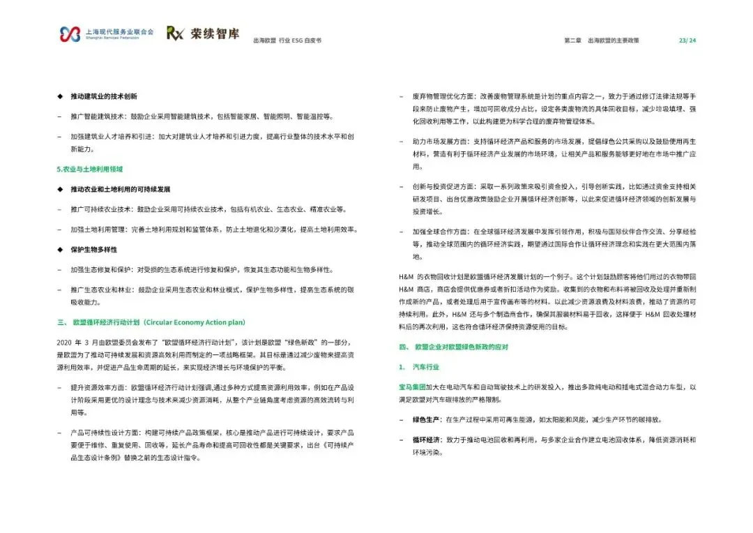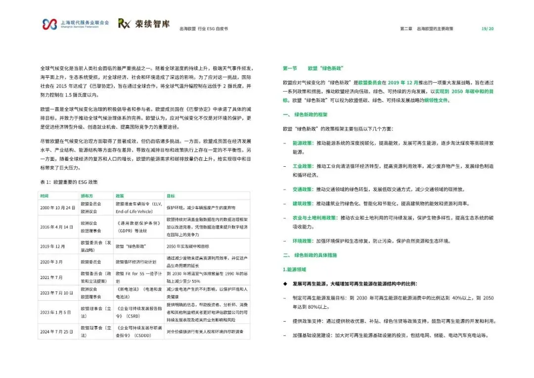 在全球可持续发展浪潮中,企业出海欧盟不仅是商业版图的拓展,更是一场与国际标准接轨的深度变革。由上海现代服务业联合会与荣续智库联合发布的《出海欧盟行业ESG白皮书》,深度剖析了欧盟严苛的ESG法规政策,挖掘行业绿色转型机遇,为出海企业提供从碳排放管控到社会责任践行,从供应链绿色重塑到企业治理革新的详尽策略与实操路径,助力企业在欧盟市场稳健前行。