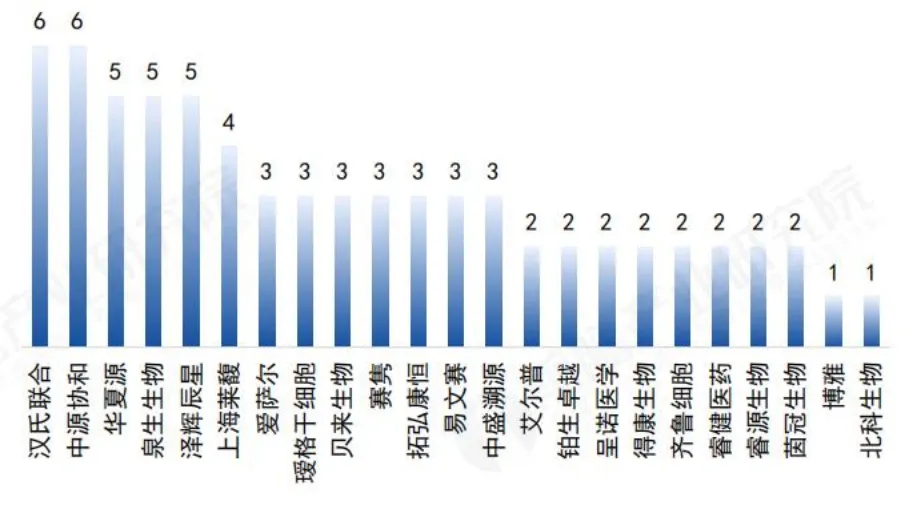 (图截至2024年10月中国代表性企业已获批IND干细胞药物数量(例))