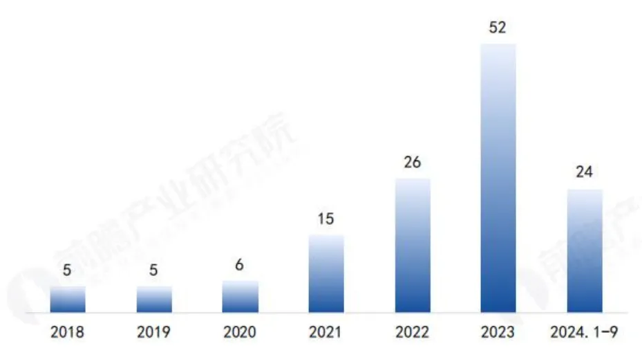 (图 2018-2024年中国干细胞药物IND申请受理数量变化(例))