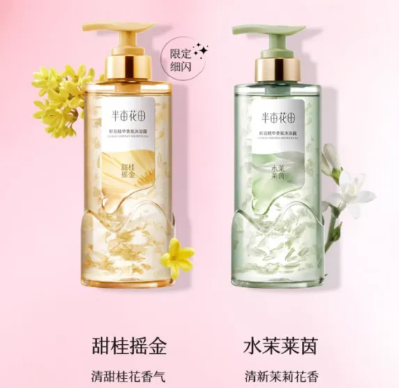 而在功效方面,半亩花田鲜花精华沐浴露除了常规的保湿、修护外,还做了皮肤嫩滑和焕亮功效,这一点让人挺惊喜的,毕竟沐浴露作为冲洗型产品,在身体上的停留时间比较短,但是得益于高含量的玫瑰花水和美白提亮成分烟酰胺,多次使用的确能看到显著效果。