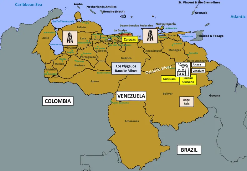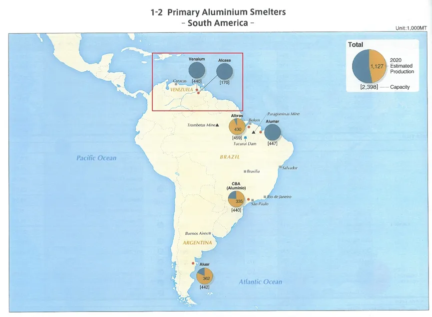 ▲委内瑞拉国内铝冶炼产业分布