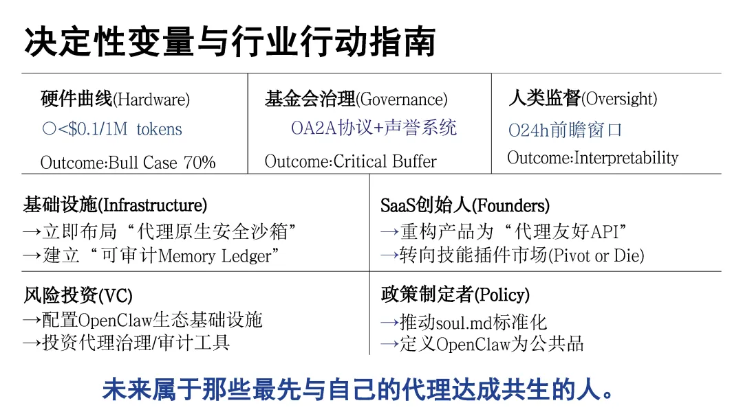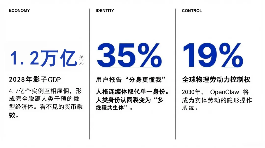 报告还剖析了 Claw 类工具生态的市场格局、安全风险与进化路径,提出从技能到蜂巢思维的五级变现体系,验证了其在一人公司等场景的高毛利商业价值,同时指出当前记忆断层、安全隐患等挑战,并预判其向硅基经济体演进的未来趋势,以及 2028-2030 年的乐观与悲观发展情景,认为其代表的 AI 代理模式是未来发展方向。