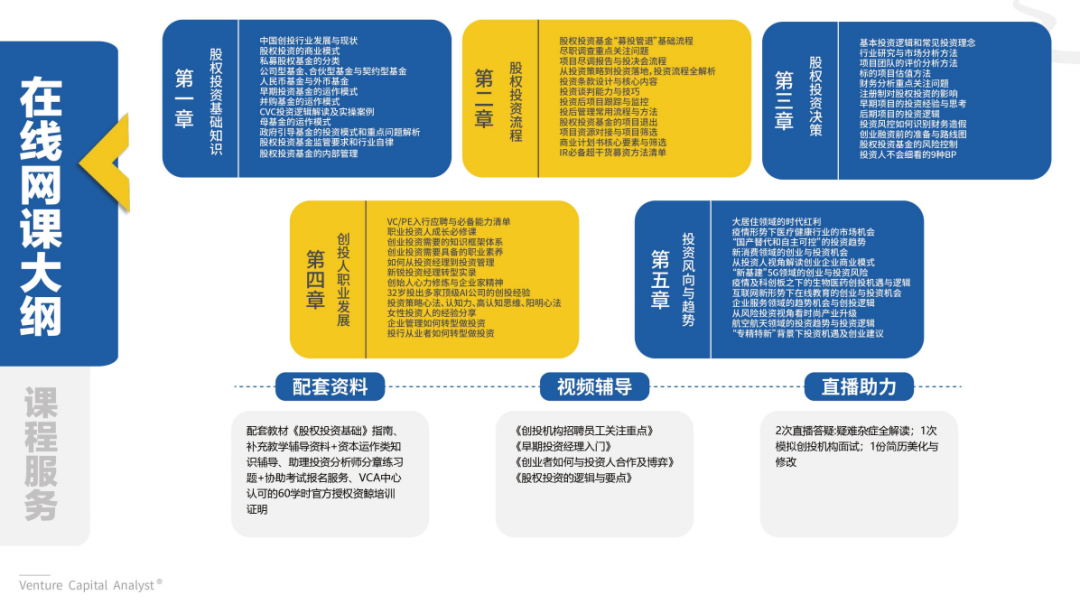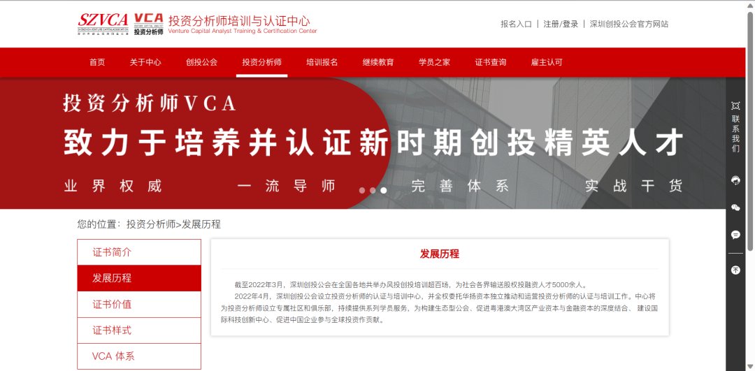 一句话介绍:投资分析师专业等级证书(Venture Capital Analyst 简称:VCA)由深圳市创业投资同业公会联合我国163家顶尖创投机构发起并认证的证书,是面向创投、企业和相关专业人士的专业等级资格水平认证。