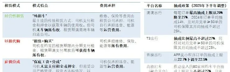 司机可根据自身需求选择网约车租赁模式,但不同租赁模式下司机承担不同的费用及风险,目前最主要的租赁模式为经营性租赁。此外,司机需入驻平台方可接单,不同平台会按照不同比例从订单收入中抽成。