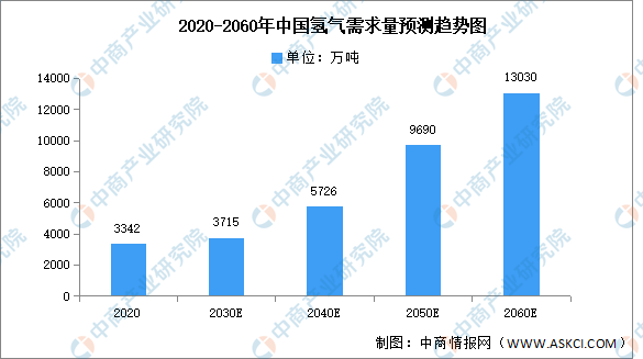 受全球气候变暖、不可再生的化石能源不断消耗等因素影响,全球能源消费结构正向低碳化转型,加快发展可再生能源已成为全球能源转型的主流方向。同时,中国在“双碳”战略的引导下,氢能产业也不断发展。需求激增撬动氢气储运市场扩张,未来我国氢能的需求量将大幅度提高。中商产业研究院分析师预测,2030年我国氢气年需求量将达到3715万吨,2040年将达5726万吨,2050年我国氢气年需求量将接近1亿吨,2060年有望突破1.3亿吨。