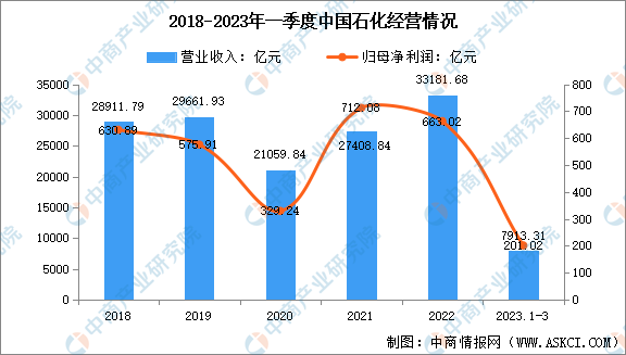 2023年一季度,中国石化实现营业收入7913.31亿元,同比增长2.59%;实现归母净利润201.02亿元,同比下降11.83%。