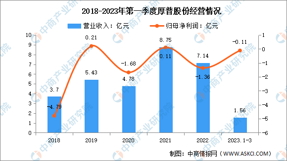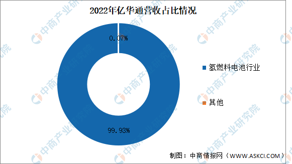 2023年第一季度实现营业收入0.48亿元,同比下降50.16%;归母净利润亏损0.39亿元。2022年氢燃料电池行业占整体营收的99.93%。