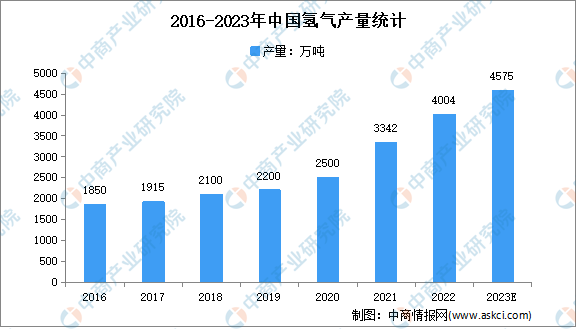 目前,我国已成为世界上最大的氢气生产国,根据中国煤炭工业协会数据,2022年我国氢气产量达4004万吨,同比增长32%。此外,我国可再生能源装机量全球第一,在清洁低碳的氢气供给上具有巨大潜力。中商产业研究院分析师预测,2023年我国氢气产量将达4575万吨。