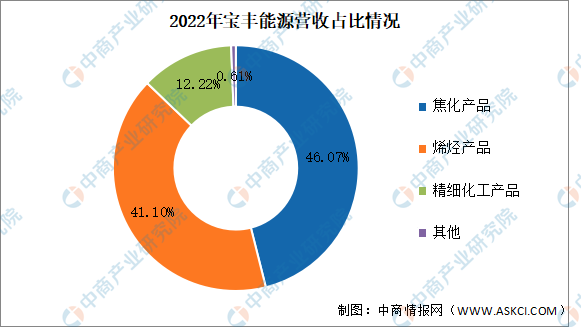 2023年第一季度实现营业收入67.33亿元,同比增长3.35%;实现归母净利润11.85亿元,同比下降32.13%。2022年主营产品包括焦化产品、烯烃产品、精细化工产品,分别占整体营收的46.07%、41.10%、12.22%。