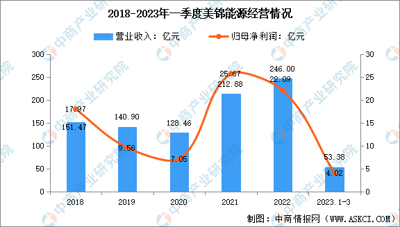 2023年一季度,美锦能源实现营业总收入53.38亿元,同比下降13.65%;归母净利润4.02亿元,同比下降40.52%。2022年焦化行业占整体营收的97.25%。