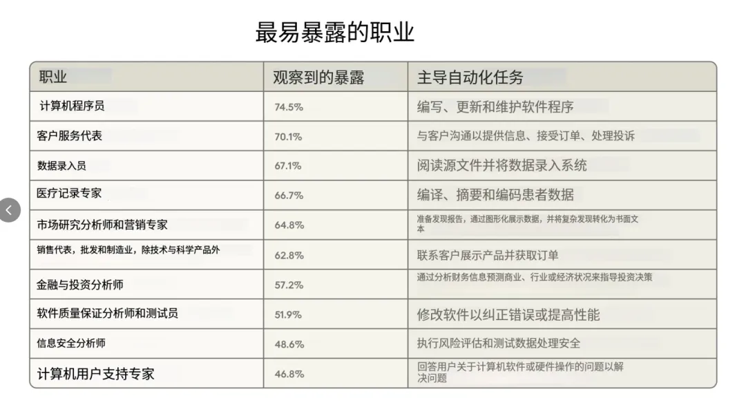 目前暴露度最高的10大职业是哪些呢 ?