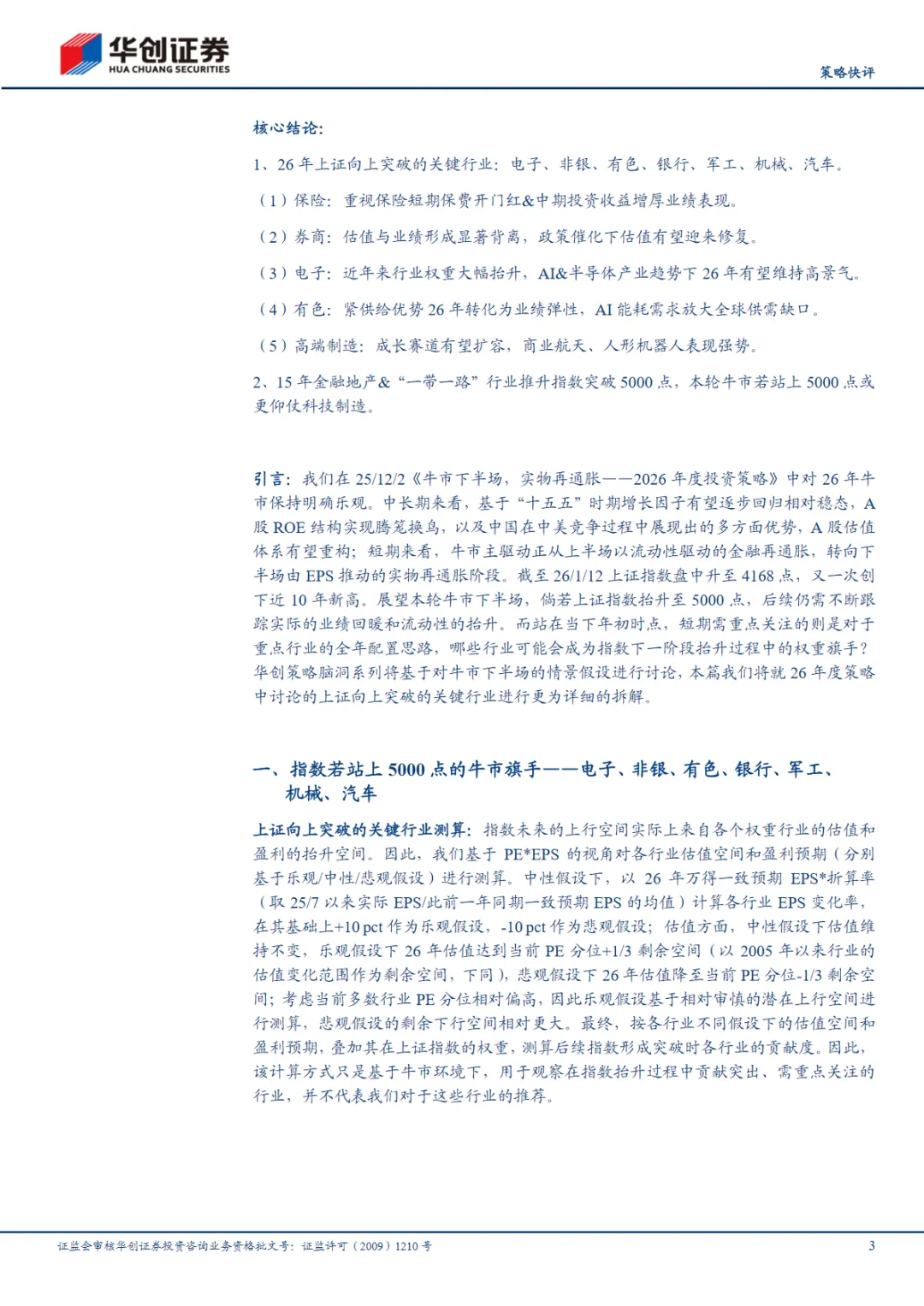 报告认为,电子行业的权重在过去十年显著提升,得益于AI算力的爆发和半导体国产替代的加速,预计2026年该行业将维持高景气。非银金融和有色金属行业虽然估值处于相对低估区间,但在盈利高增和估值修复的双重驱动下,有望显著上行。银行业虽然EPS增速不高,但由于其在上证指数中的权重较大,对指数的拉动作用明显。军工、机械和汽车行业则受益于商业航天、人形机器人及智能驾驶等产业趋势,具备较大的指数贡献潜力。