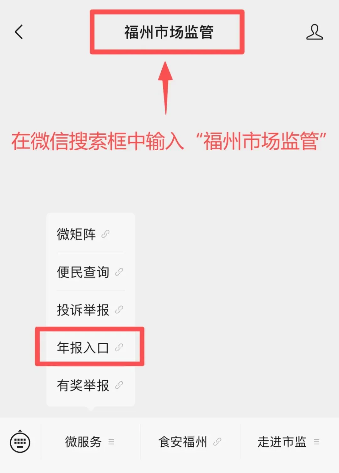 方法四:个体工商户还可以通过手机微信关注“福建市场监管”“福州市场监管”公众号、闽政通App或以纸质方式向登记机关报送年度报告。