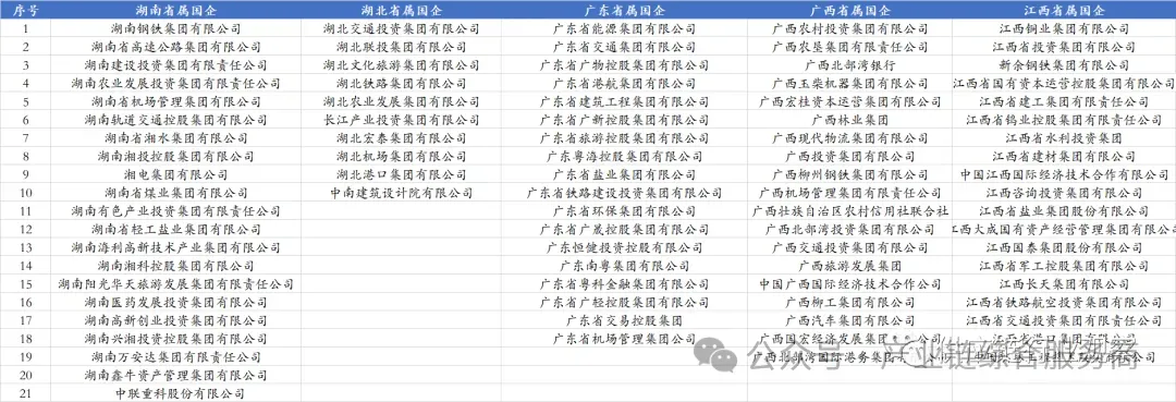 湖南、湖北、广东、广西及江西,这5个省份及省级行政区,共设立了87家省属国企。其中湖南省21家、广东省18家、广西省19家、江西省19家。