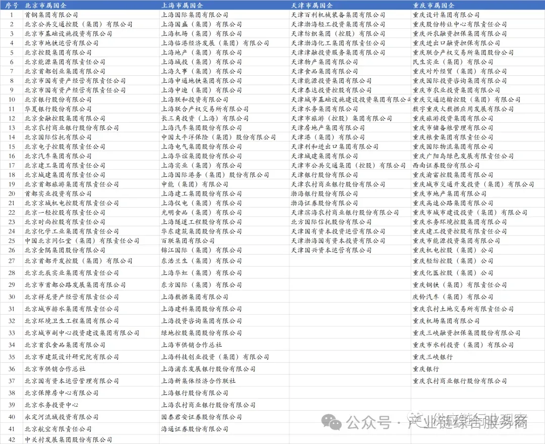 据小编统计,北京、上海、天津、重庆四大直辖市省属监管企业共146家,其中北京市42家、上海市41家、天津市26家、重庆市37家。