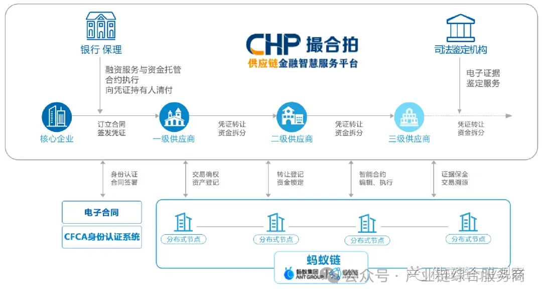 四川省投资集团旗下川投云链川投云链已成为颇具影响力的第三方供应链金融平台。川投云链立足金融科技,综合运用区块链、大数据、云计算等科技技术,延伸银行、租赁、保理、担保等各类服务产品打造了“撮合拍供应链金融智慧服务平台”(www.cuohepai.com),已形成“供应链金融服务门户效应 ”,撮合拍平台已获“国家信息系统安全等级保护”三级备案,已和建行、平安、中信、华夏等银行实现总行级系统直连,与招行、宁波、华润、网商、重庆富民等20余家金融机构进行了系统对接或产品合作,围绕产业供应链场景,为各类企业客户提供企业确权支持(供应链票据、电子债权凭证)、场景金融搭建(支付易、场景通、供应链云、政采贷、证租通)、资本市场对接 (保理云)、金融科技输出(产融新基建、中间件等)、企业增值服务(工商服务、财税服务等)五大类综合服务,通过线上化、数字化、平台化的服务模式促进金融资源与产业端精准配置与高效对接,践行普惠金融,促进产业链实现降本增效。2022年9月,川投云链平台模式获四川省经信厅推荐入选由工业和信息化部联合国务院国资委、全国工商联组织开展的《大中小企业融通创新典型模式案例集2022》。