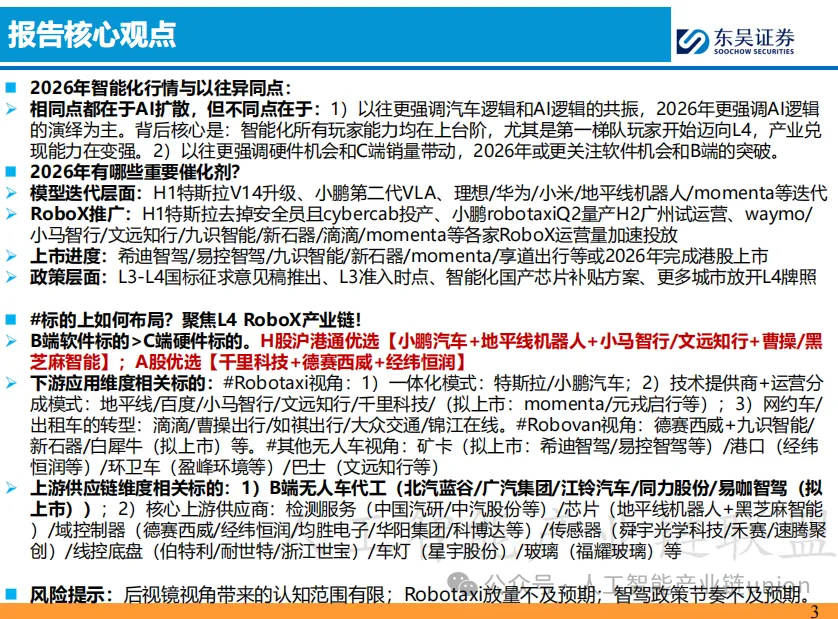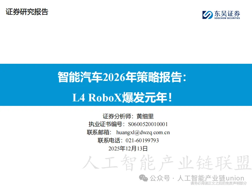 东吴证券: 《智能汽车行业2026年策略报告:L4 RoboX爆发元年!》