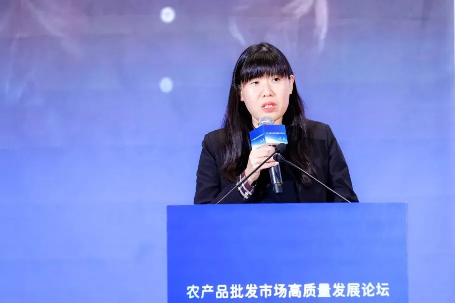 作为农业产业化国家重点龙头企业核心管理者,韩艳依托中国供销农产品集团在 18 个省市参控股 40 家大型农批市场的深厚资源,沉淀了丰富的行业研究与运营管理经验。发言中,她基于海量调研数据,系统剖析国内农批市场结构特征:70 万以上人口城市农批市场中民营主体占比达74.4%,500 万以上人口城市市场平均运营年限 12.6 年,百强市场交易额中位数达 190 亿元,清晰呈现行业发展基本面。