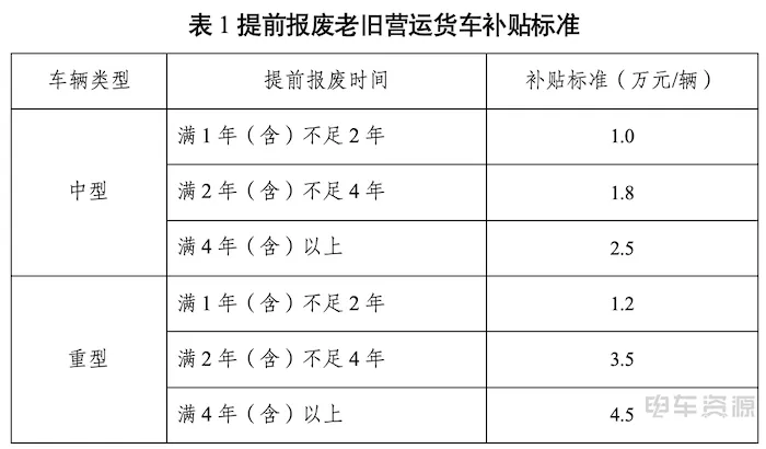 老旧重型营运货车满4年及以上报废可获4.5万元补贴