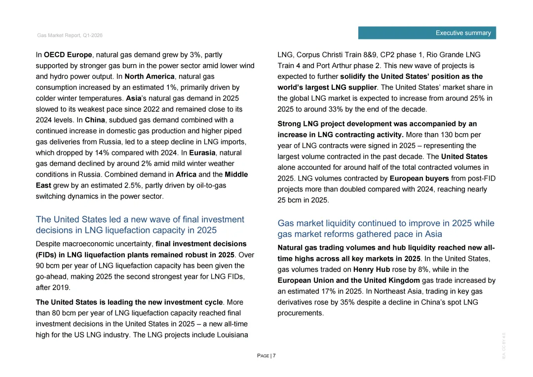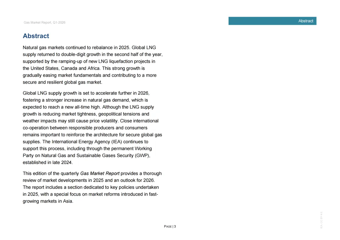 报告由国际能源署发布,核心描绘了全球天然气市场在2025年经历的“过渡之年”与面向2026年的“加速之年”图景。市场正从2022-2023年的供应冲击中逐步恢复平衡,但结构正在发生深刻变化。